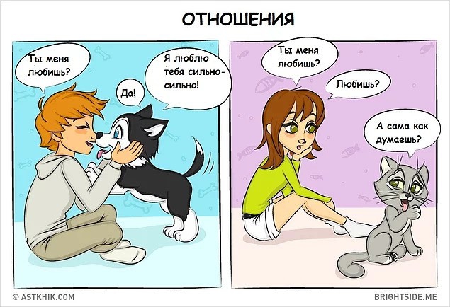 Кошатники больше сосредоточены на себе, чем на окружающих. Преданность собак обычно комментируют как «собаки такие глупые!»