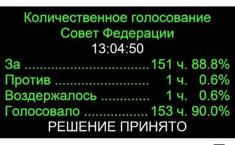 151 — ЗА ; 1 — ПРОТИВ ; 1 — ВОЗДЕРЖАЛСЯ