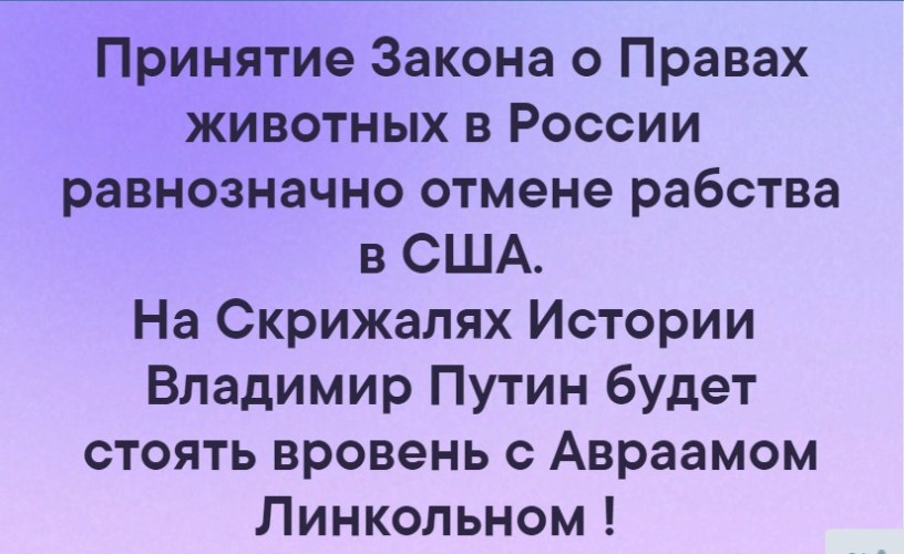 Этот Закон гарантирует всем домашним любимцам основополагающие Права , аналогичные Правам человека :