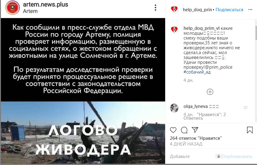 Если верить сообщению пресс-службы МВД РФ по городу Артему, то полиция проверяет информацию опубликованную волонтерами .